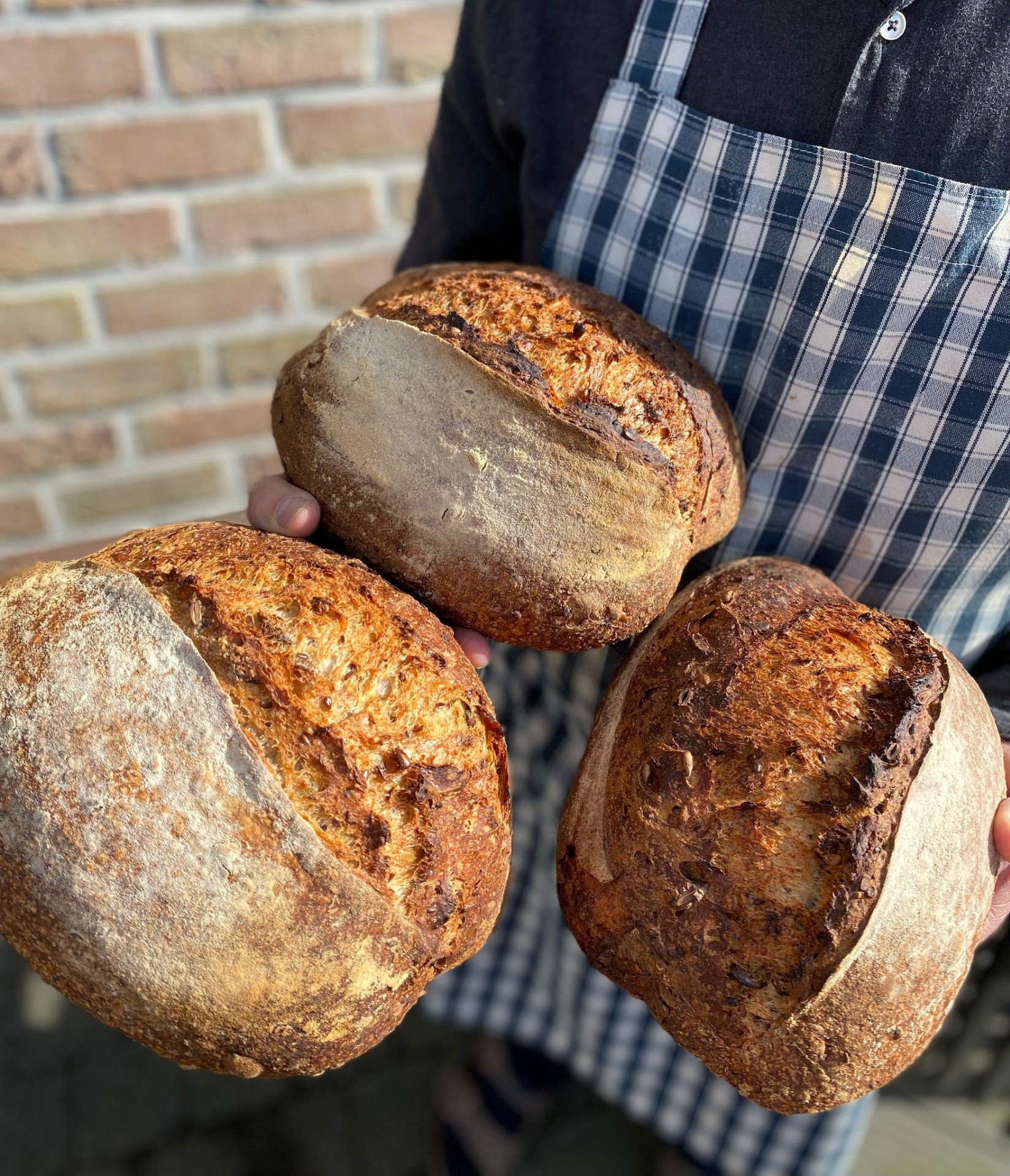 Bloem, water en zout zijn de basisingrediënten die in een desembrood gebruikt worden. Hiermee ga ik, meestal tijdens het weekend, in mijn microbakkerij aan de slag.Deze basisingrediënten volstaan voor de baguettes maar voor volkoren of zadenbrood voeg ik zonnebloem-, pompoenpitten en lijnzaad toe. Ook gebruik ik volkoren tarwemeel of volkoren roggemeel om de broden voedzamer en smaakvoller te maken. Al deze meel- en bloemsoorten komen altijd van de "Molens Vanden Bempt" in Sint Joris Weert bij Leuven, waar Luc mij altijd met de glimlach bedient!